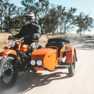 Our bikes are happy cruising up to 105 kpm/h. Our 745cc engine combined with powerful low end torque is the perfect size to compliment the steering dynamics of our all steel sidecar.
